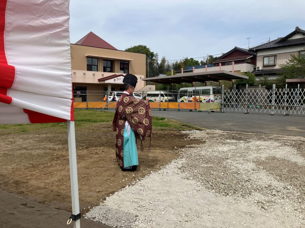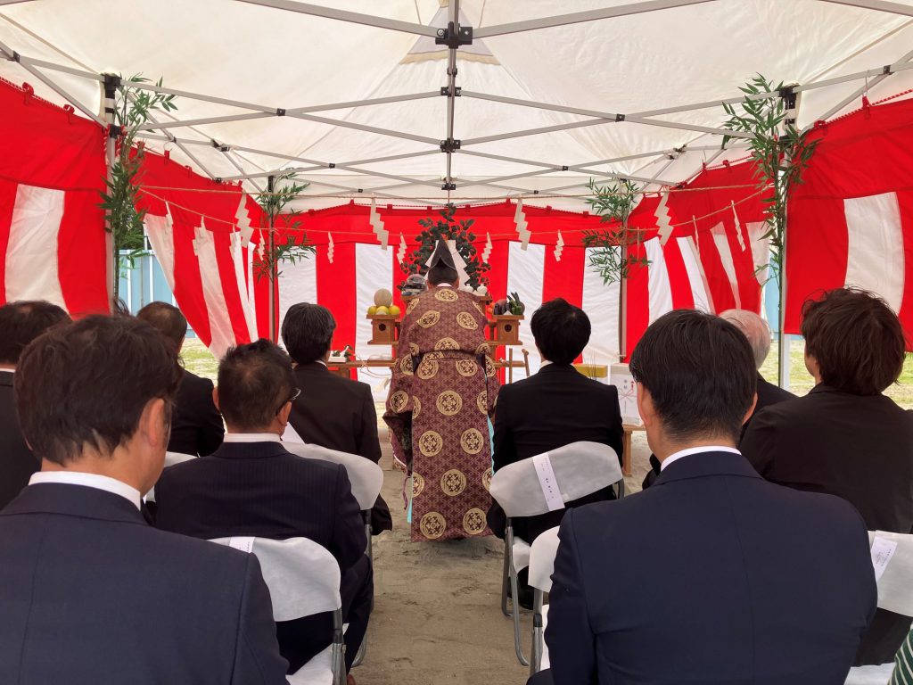 工事着工の前に、土地の神様に安全と繁栄を祈願し、これから工事が進められていきます。